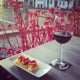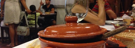 Ambiente rústico e charmoso, repare nas mesas com pés de máquina de costurar. Vinho na caneca é boa pedida para acompanhar o delicioso bacalhau com natas.